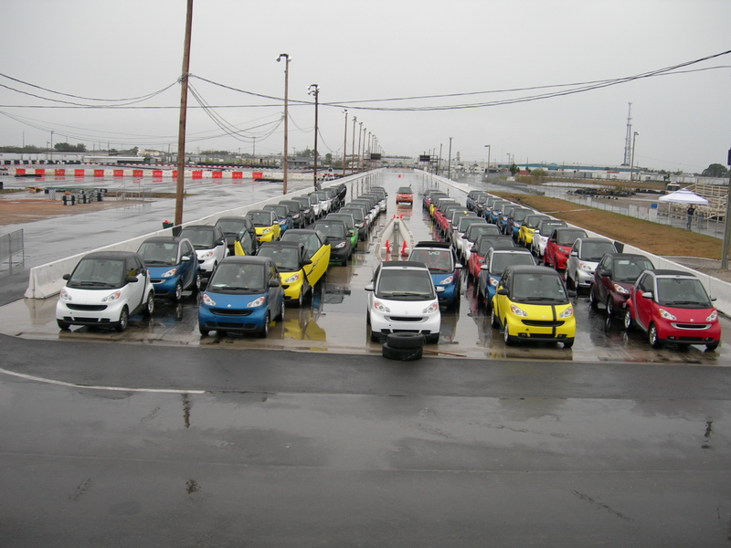 55 smart cars line up for the