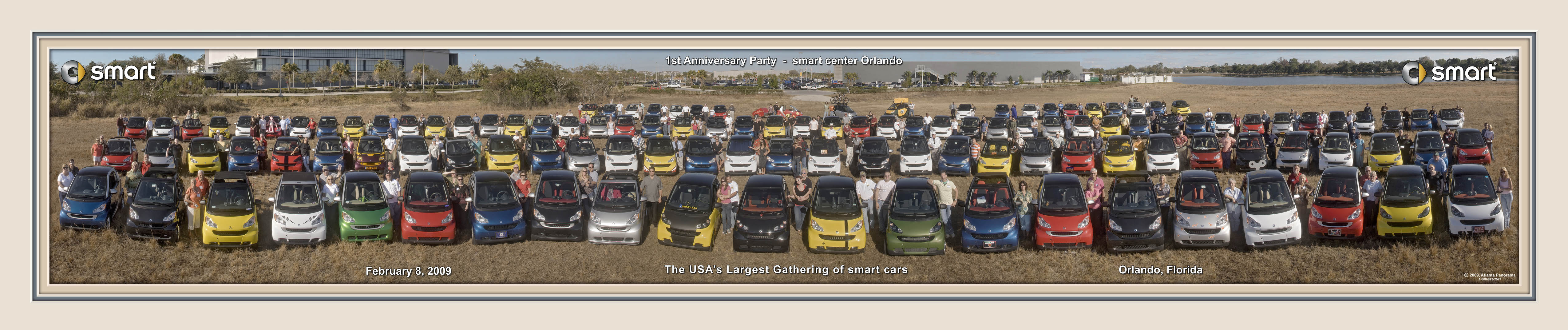 122 smart cars gather for a 1st anniversary photo sponsored by smart center orlando sunday, february 08, 2009 click for a 5100 x 1073 dpi/1mb version |