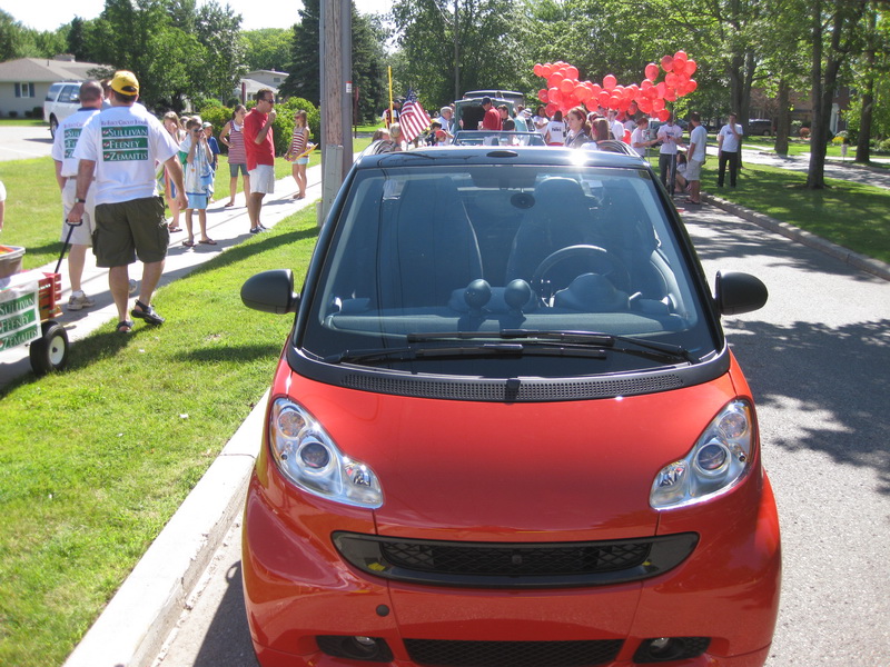 | thanks to stuart berman, we were pleased to participate in the east grand rapids july 4th parade. an estimated 10,000 people lined the one-mile route, and it was great to see the many positive reactions to our smart cars! | ||||